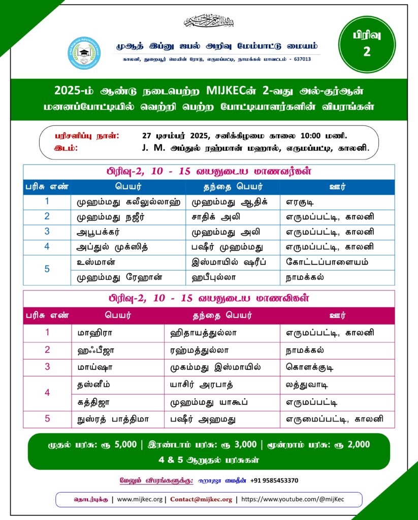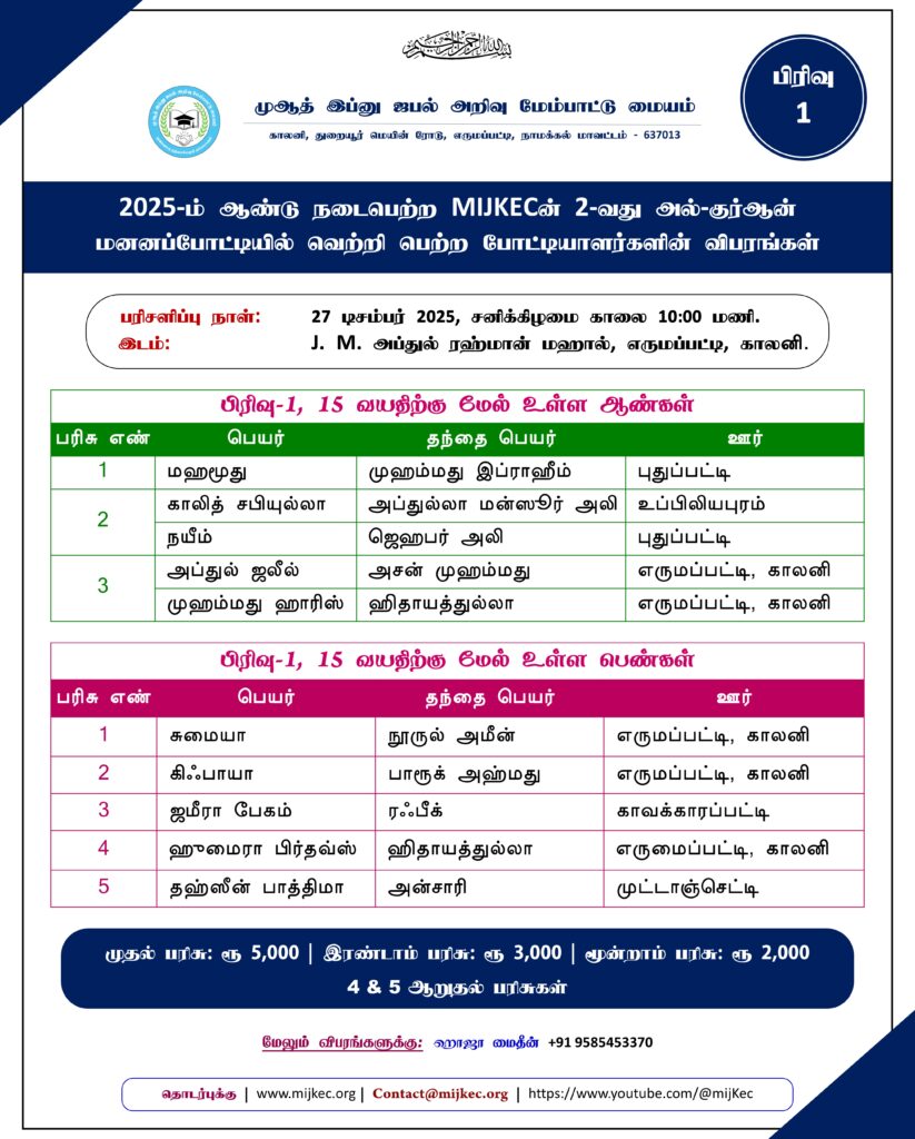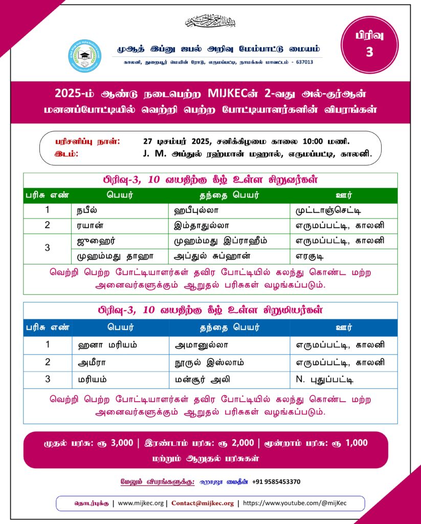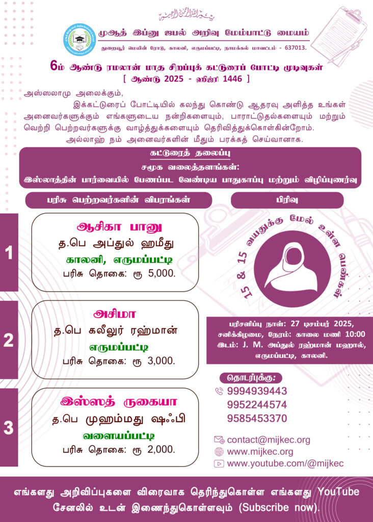 ரமலான் சிறப்பு போட்டி (2025) முடிவுகள்